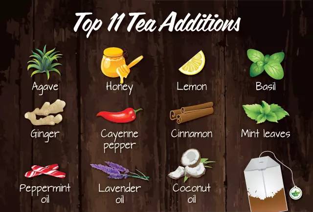 国外最流行的茶伴侣有龙舌兰,蜂蜜,柠檬,罗勒,生姜,辣椒,肉桂,薄荷叶,薄荷油,薰衣草油和椰子油等。你也可以挑自己喜欢的试试。